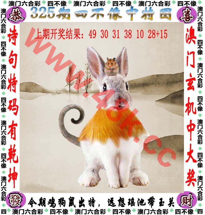 | 324期: ⑥肖 | 猴龙鸡虎兔蛇 | ????中 |